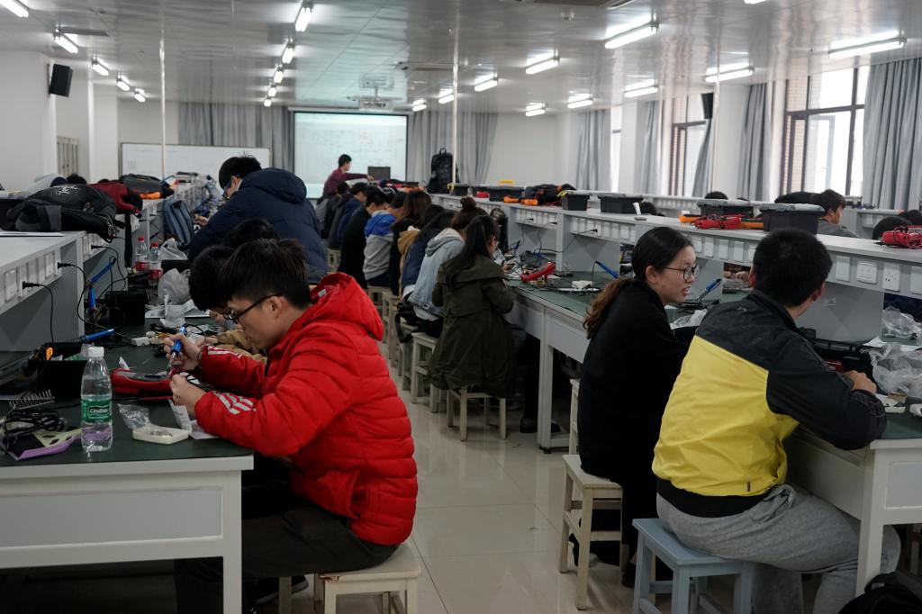 必赢国际437官网电工电子实验教学中心前身是必赢官网1998年11月成立的电气信息技术中心实验室;2002年更名为必赢国际437官网基础课实验教学中心。2005年2月,中心将各学院的电子信息类基础课程实验室合并,同时学校投资620万更新改造设备、扩充台套数,成立了面向全校师生开设电工电子类实验、实习与创新的电工电子实验教学中心,于当年7月获批省级实验教学示范中心。中心现有各类实验室共46间,实验用房面积约5300多平方米,价值1900余万元,全部面向本科生开放,并实现了实验室开放、学生自主实验预约的信息化管理。承担了电子信息工程学院、生物医学工程学院 、计算机科学学院、化学与材料科学学院、资源与环境学院等理工科学院开设的共30门电子信息类实验课程,并通过平台的开放支持学生开展电子信息类课程设计与创新实践活动,也是大学生开展电子信息类课程设计、全国大学生电子设计竞赛、本科毕业设计、科研与创新实验等大学生科技创新活动的重要场所。
