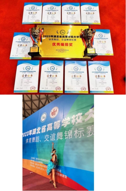 2023“湖北省高等学校体育舞蹈锦标赛”必赢官网队获得了甲组女子拉丁B组第一名,A组第二名,E组双人第一名,C组第六名、第八名甲组标准舞单人第二名。以及”最佳组织奖”的优异成绩。