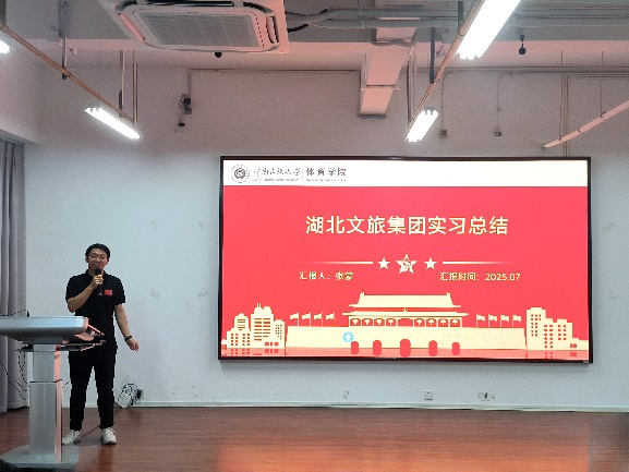 7月2日上午9时,大会在庄严的国歌声中拉开序幕。随后,进入实习小组汇报环节,各小组代表依次上台,通过图文并茂的展示,分享实习期间的经历、成果与感悟。他们在各类体育教学、赛事组织、健身指导等岗位上积极实践,将课堂所学运用到实际工作中,充分展现体育学院学子扎实的专业素养和积极进取的精神风貌。