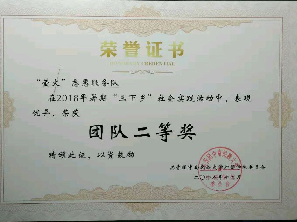 “萤火”志愿服务队成立于2017年6月,主要针对湖北省鄂州市梁子湖区贫困留守儿童开展教育帮扶活动。服务队志愿者利用自身语言专业优势,着重培养学生英语学习兴趣,帮助学生建立良好的学习习惯;同时促进学生了解国家时事政治,有利于学生正确的人生观、世界观和价值观的形成。