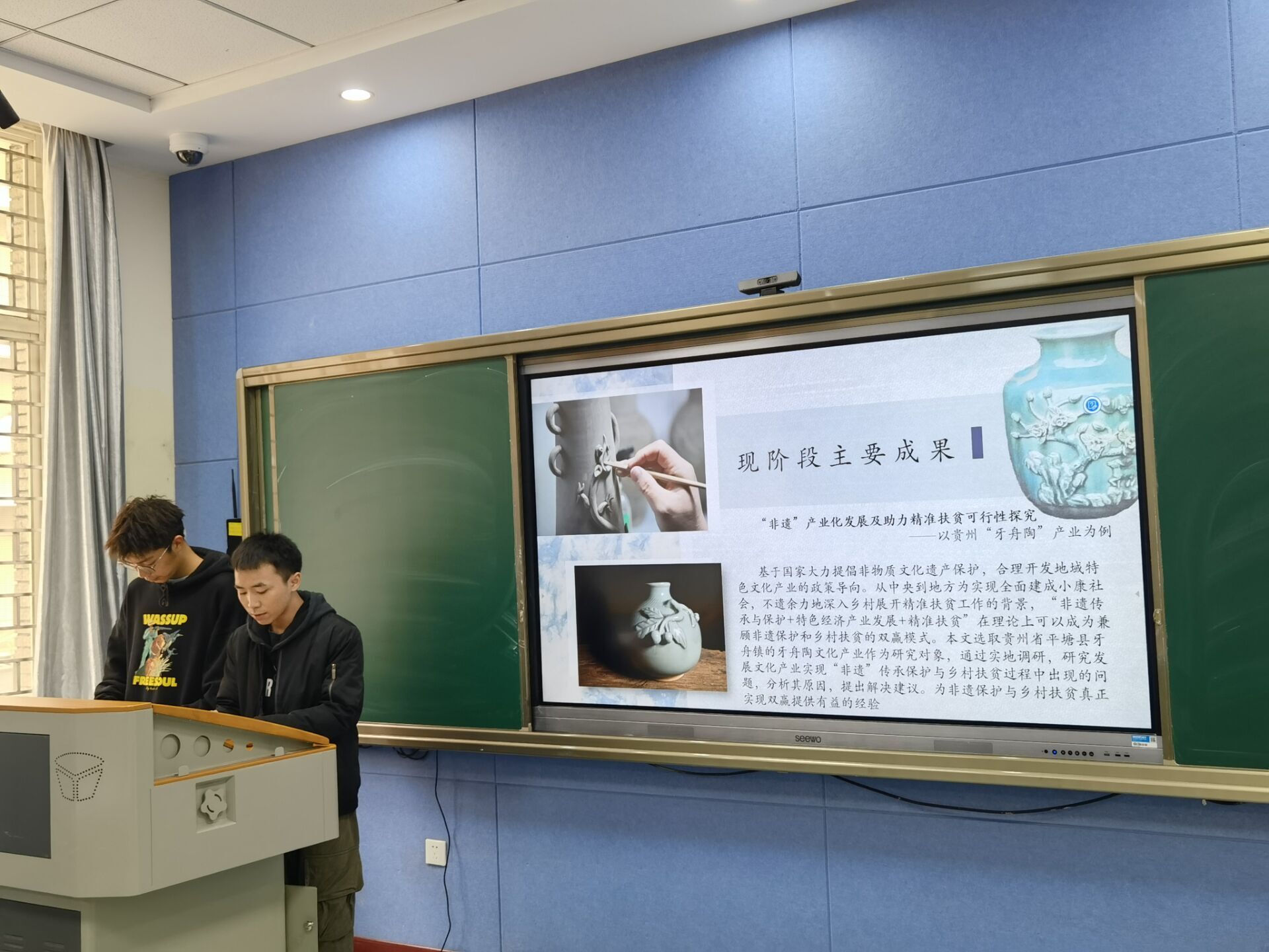 本次答辩会《文旅融合视域下关于少数民族非遗文化的有效保护与合理开发策略研究——以贵州平塘非遗传承与旅游业发展现状为例》和《粉丝文化对当代青年的影响》两个国家级项目组同学参与。期间,项目负责人根据课题研究内容、项目阶段性成果、当前遇到的问题以及未来工作计划进行了汇报展示。专家组根据汇报结果和书面材料对两个项目进行了点评,还就项目未来研究规划提出了的建议。