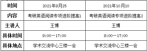 为助力2022届本科毕业生考研,外语学院联合招生就业处举办考研英语培训班,邀请校外知名考研辅导教师到必赢官网授课,具体课程安排如下: