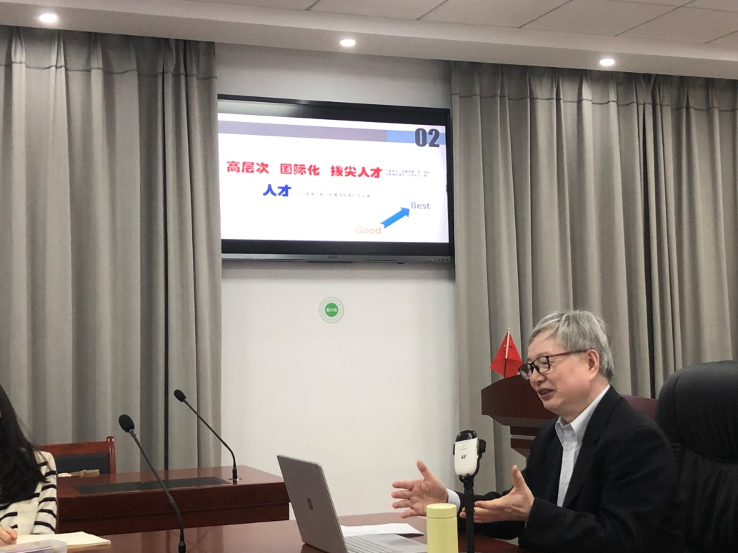 10月13日晚上,国家外国专家局教科文卫专家司原司长、国际教育学院特聘教授杨长聚教授,受邀为高层次国际化拔尖人才培养实验班(简称“实验班”)的同学讲授主题为“对高层次国际化拔尖人才培养重要性的再认识”的研讨课。本次活动由外语学院副院长李敏杰老师主持,国际合作与交流处孙晓丽处长参加。