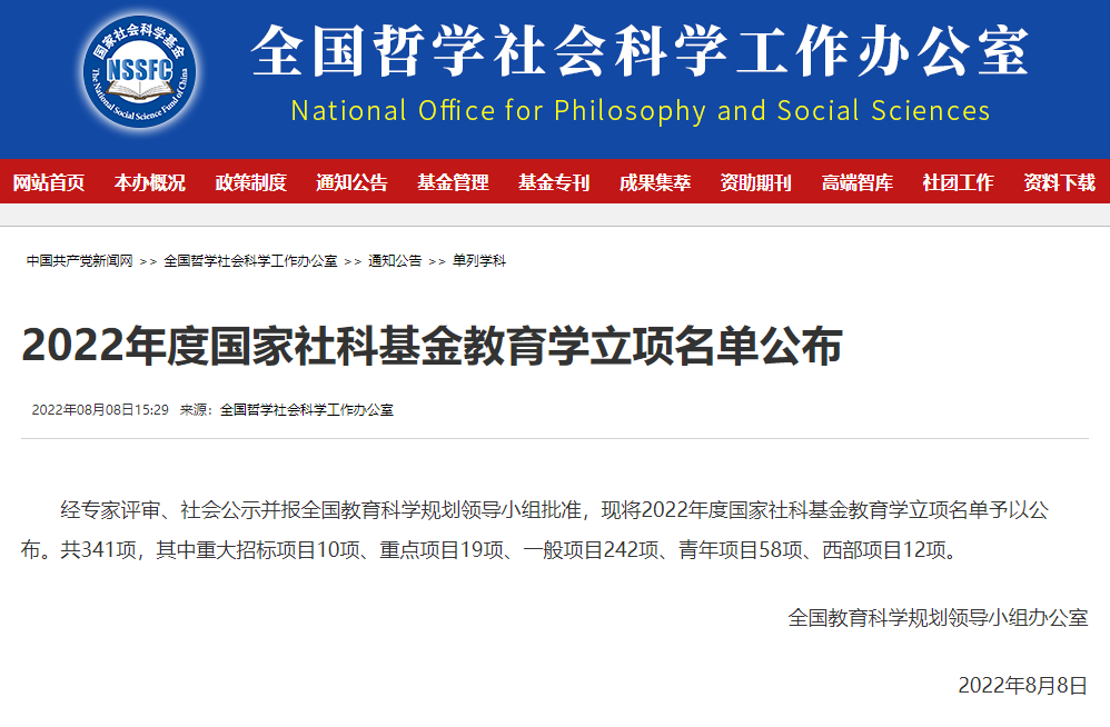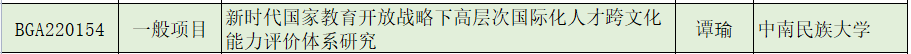8月8日,全国教育科学规划办公布了全国教育科学“十四五”规划2022年度课题立项名单,共立项583项,其中国家级项目341项,教育部各类项目242项。外语学院谭瑜副教授的课题《新时代国家教育开放战略下高层次国际化人才跨文化能力评价体系研究》获批全国教育科学规划国家一般项目立项。这是谭瑜副教授第二次获批全国教育科学规划国家级项目。