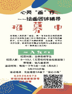 本学期心理健康教育中心为大家准备了七种不同形式的团体辅导及工作坊,欢迎大家的加入!详情可以看海报内容噢~