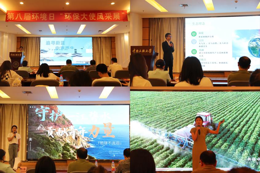 来自资环学院的志愿者代表们用最嘹亮的声音宣读环保倡议书,展示出青年学生志愿投身环保事业、建设美丽中国的决心和信心。在决赛演讲环节,来自不同学院的参赛队伍紧紧围绕“建设人与自然和谐共生的现代化”这一活动主题进行精彩演讲,以青年视角展示新时代生态环境保护工作的突出成就,致敬新时代下促进绿色发展的环保铁军,讲述全社会参与美丽中国建设的生动故事。
