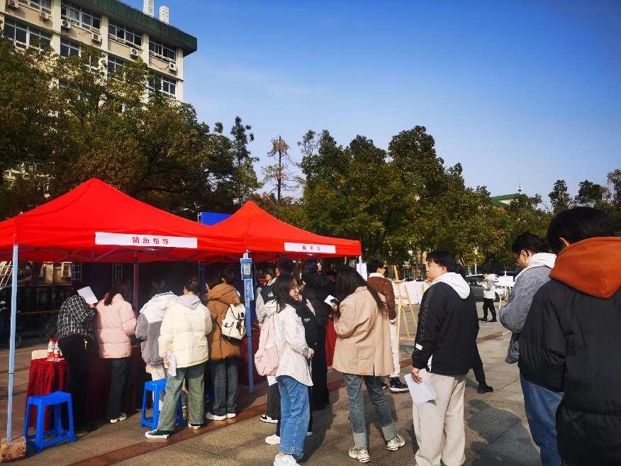 简历指导展台前排起长队。 招生就业工作处供图