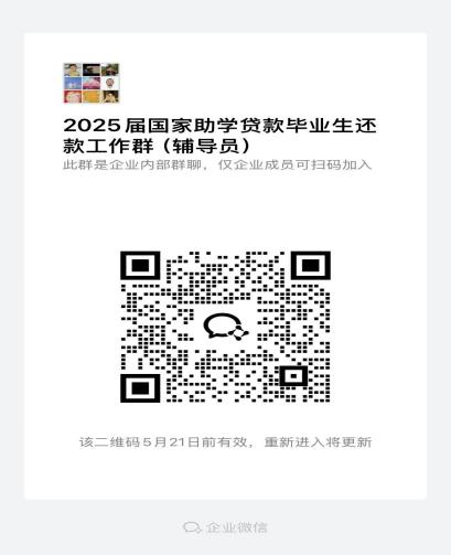 1、为减轻学院负担,提升整体工作效率,必赢官网建立了2个企业微信还款工作群:1群和2群。1群:2025届贷款毕业生还款工作辅导员群,请各位毕业班辅导员老师尽快加入,今后有关还款工作细节将通过此群交流;2群:2025届校园地贷款毕业生还款学生群,咨询还款细节及具体操作流程等,请各位老师尽快通知相关学生务必于5月18日前加入该群。