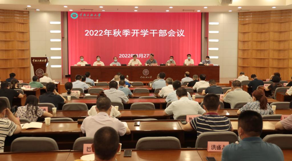 边境首先回顾了学校暑期工作情况,肯定了疫情防控和安全稳定、学科建设与教学管理、科研与社会服务、学生管理服务、毕业生就业和新生录取、干部及教职工队伍建设与管理、校园建设与后勤保障及其他各方面的工作。他指出,今年下半年的总体工作思路是:坚持以习近平新时代中国特色社会主义思想为指导,深入贯彻落实党的十九大和十九届历次全会精神,全面贯彻落实习近平总书记关于加强和改进民族工作的重要思想、关于教育和人才工作的重要论述,坚持不懈贯彻落实中央民族工作会议精神、国家民委直属高校工作座谈会精神,坚持以铸牢中华民族共同体意识为主线,立德树人、改革创新,持续用力抓好国家民委党组巡视整改,稳步实施学校“十四五”发展规划,推动学校内涵式高质量发展,推进学校转型升级,以更加优异的成绩迎接党的二十大胜利召开,以更加有力的行动贯彻党的二十大精神。一、以习近平新时代中国特色社会主义思想为指导,持续加强党的建设。加强创新理论学习,加强党的政治建设,推动巡视整改落实落地,抓实思想政治工作和意识形态工作,强化党的组织建设,推进干部队伍建设,加强党风廉政建设,做好统战、群团和离退休工作。二、以铸牢中华民族共同体意识为主线,深入推进各族师生共有精神家园建设。完善落实主线的体制机制,深化重大理论和现实问题研究,促进各族师生交往交流交融。三、以立德树人为根本任务,深入推进学校“双一流”建设。做好顶层规划,全面提升人才培养质量,持续加强学生工作,深化专业课程一体化建设,提升学科建设水平,加强教师队伍建设,深入推进科研创新,持续提升社会服务能力,提升对外开放办学水平。四、以信息化为抓手,提升学校治理能力和治理水平。全面落实疫情防控各项要求,完善学校内部治理,做好基建后勤服务保障。