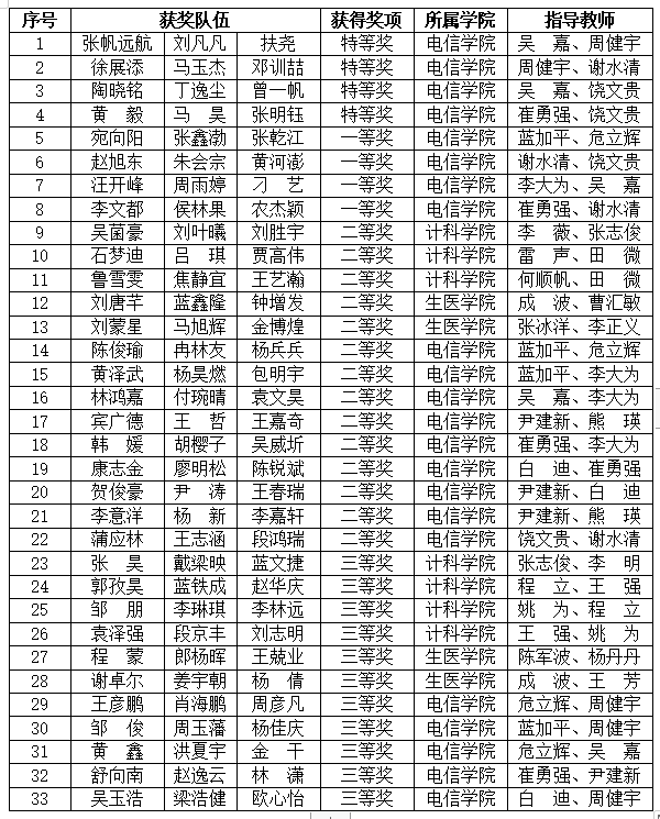 各相关学院高度重视学生实践能力和创新精神的培养,大力开展“第二课堂”工程实践能力培养,鼓励和支持学生参与高水平学科竞赛。以电信学院为例,该学院建有设施优良的创新实验室,组建了创新教师团队,制定了完善的系统化创新培养体系,定期开展电子设计协会专业基础培训、大学生电子创新设计训练、“求真杯”电子设计竞赛等系列创新活动和课外培训,鼓励学生将所学用于实践。