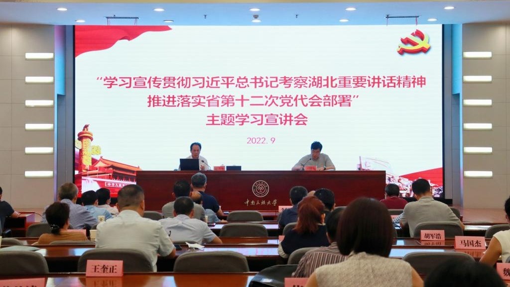 李金林指出,报告立意高远、内容深刻、逻辑严密,具有很强的指导性和针对性。他强调,要全面把握此次宣讲内容,认真领会精神实质,把学习成果转化为学校抓好贯彻落实的实际行动和工作成效。各级党组织、各单位要通过中心组学习、主题党日团日、“三会一课”、政治理论学习等多种形式,组织干部师生深入开展学习交流,推动习近平总书记重要讲话精神入脑入心、落地落实。要认真学习和贯彻落实湖北省第十二次党代会精神,全面落实立德树人任务,提高人才培养质量,努力在人才资源供给、科技自主创新、服务现代产业、助力乡村振兴等方面实现新突破,在推动高质量发展和校园安全良性互动上取得新成效,为湖北建设全国构建新发展格局先行区,加快建成支点、走在前列、谱写新篇贡献民大智慧与力量。
