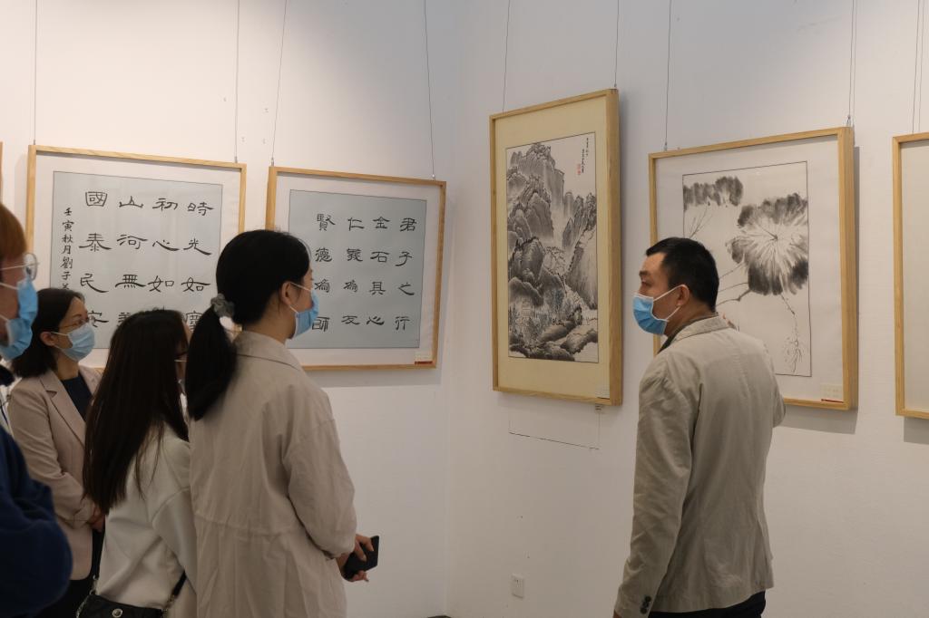 此次展出的书画作品紧扣主题。书法作品从“清廉如水”到“水以清为贵,人以廉为尊”,从“清风满怀”到“养浩然正气,极天地大观”再到“永葆初心”,无不对新时代清廉学校建设寄予了期冀。“风正一帆悬”“砥柱中流”则是欢庆党的二十大胜利召开。当“爱国”二字方方正正布于宣纸之上,爱国情怀扑面而来。画作则借梅兰竹菊、水仙、莲花等传达清廉之道。水墨山水画富有层次感,将“阴中含阳,阳中含阴”的中国优秀传统哲学融入笔墨之中,充分展现了文化自信。以石榴为题材的水墨画喻示中华民族团结一家亲,钟南山、袁隆平两位院士的肖像画展示了为国为民的高尚精神追求。美术学院学生以校园风光为内容的多幅油画写生作品还加上了党的二十大胜利召开的元素。