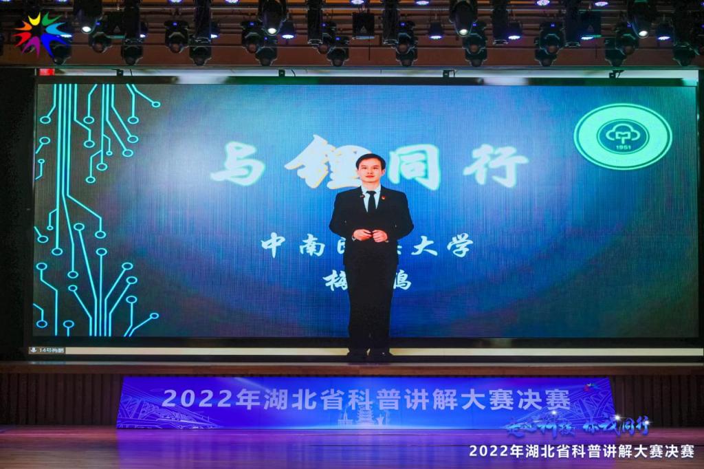 必赢官网化材学院梅鹏老师以“与锂同行”为主题,生动讲解了锂离子电池的基本工作原理和主要性能特点,解析了双碳背景下锂离子电池对于实现碳中和这一全人类共同目标的重要作用,普及了绿色低碳的生活理念。在评委问答环节,梅鹏老师展现了丰厚的科学知识储备和随机应变能力,赢得了现场评委们的一致认可。经过激烈角逐,梅鹏老师以总分第一名的好成绩,与来自湖北省卫健委的选手程志鹏和来自武汉市科技局的选手田维皓同获一等奖,学校荣获优秀组织奖。