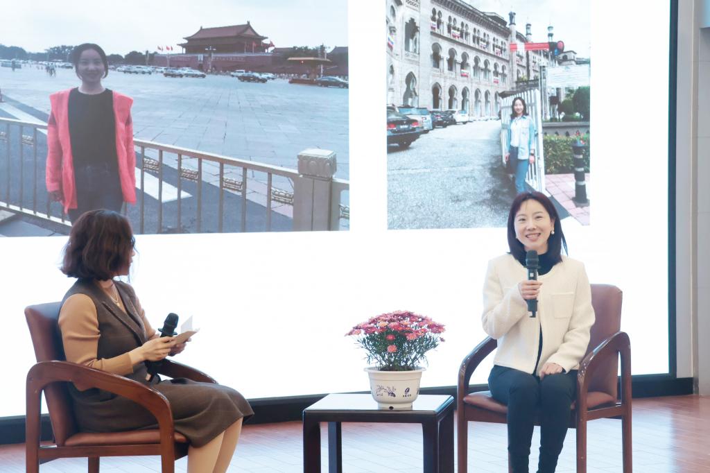 饶映雪老师(右)在访谈中。 杨成义摄