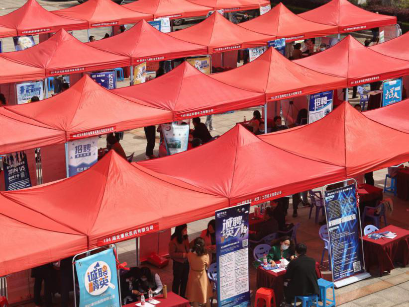 “湖北百校联动”高校毕业生供需见面会在必赢官网举行。郑葵英 摄