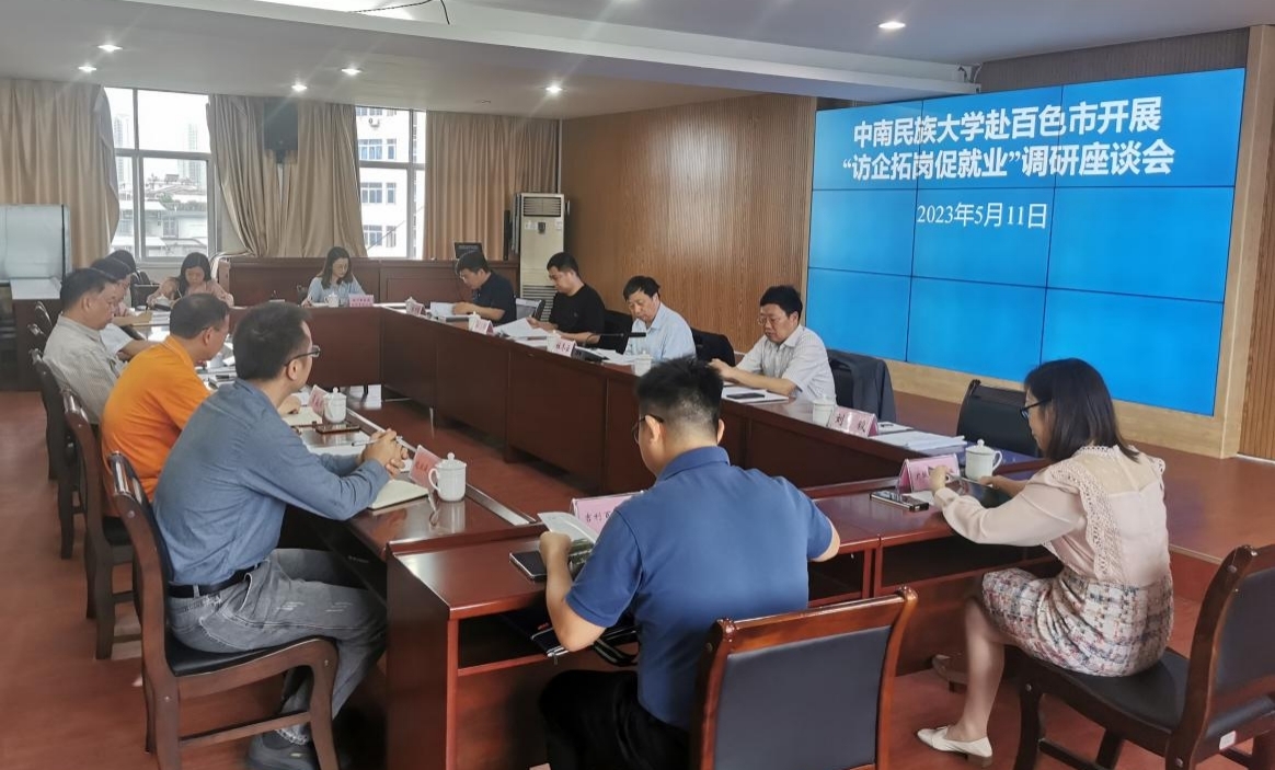 在百色市,杜冬云一行与该市政府二级巡视员黄廷文、市人社局局长凌玉强及百色市相关行业、企业负责人进行座谈交流。双方围绕毕业生供需交流、校地合作、校企合作等探讨了深化合作的方向。学校与裕宁新能源有限公司、广投银海铝业有限公司、吉利百矿集团有限公司、靖西湘潭电化科技有限公司就毕业生就业、校企科研合作、共建实习实训基地方面达成了合作意向。