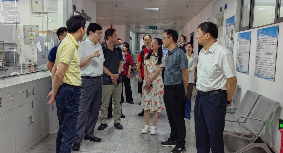 李斌(前排右二)一行在李金林(前排左二)等陪同下参观药学院实验室。 柳斌摄