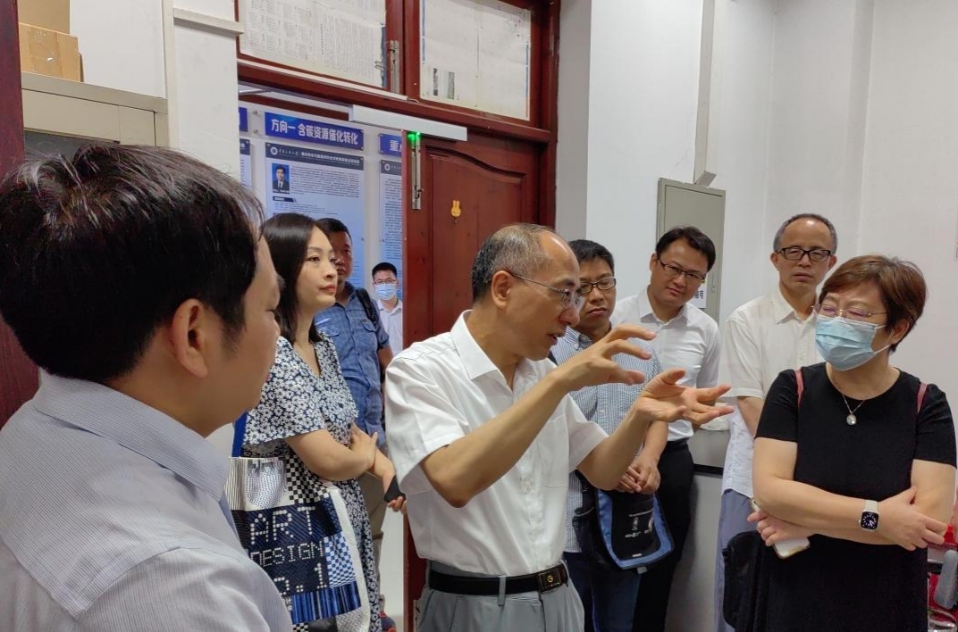 张柏青(前排中)一行在化材学院调研。 柳斌摄