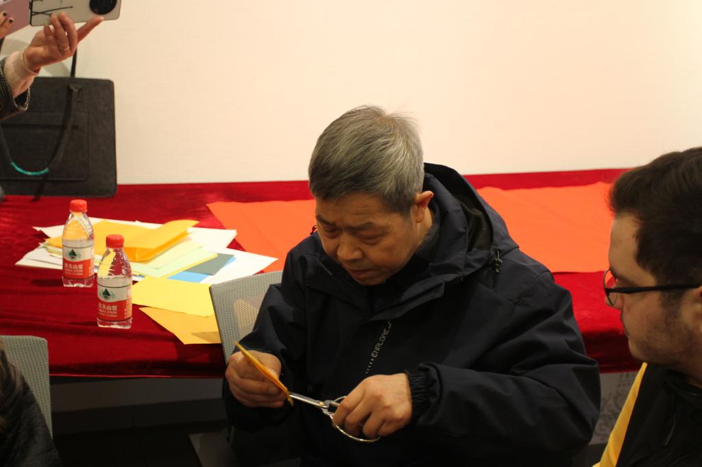 郭如林先生现场展示剪纸艺术。马蕊 摄