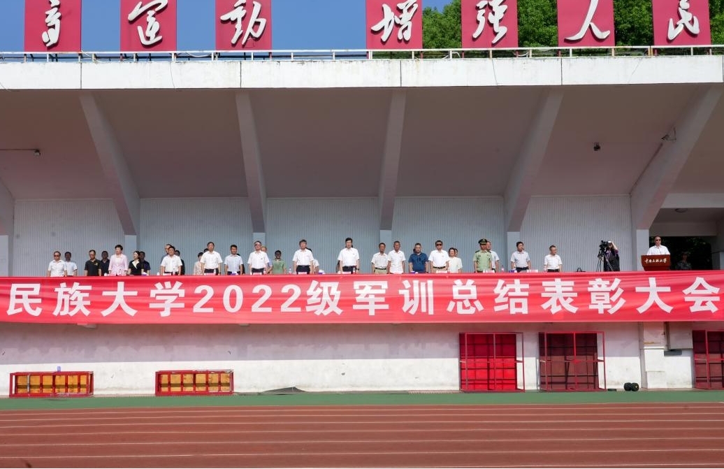 随后,校长李金林向军训团赠送了军训纪念锦旗。宋发军作大会总结,号召同学们继续发扬军训精神,赓续红色血脉,传承民大基因,争做铸牢中华民族共同体意识坚定的宣传者、践行者,把人生理想融入国家和民族的事业中,为实现中国梦奉献智慧和力量。
