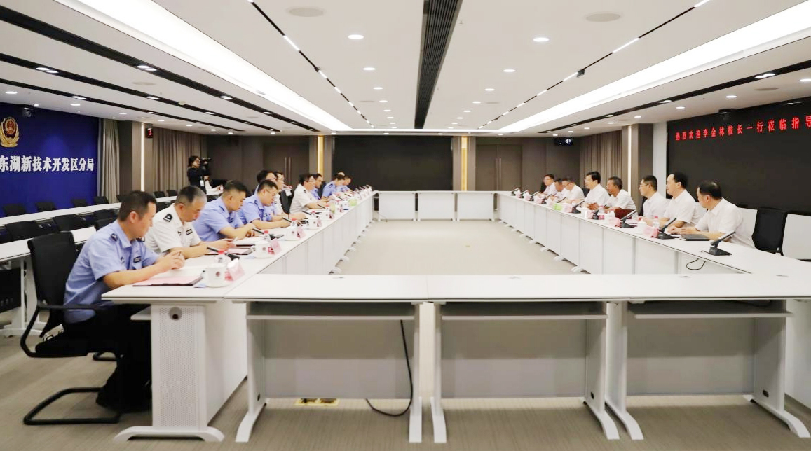 为深入推进校地合作、警校共建落地落实,9月18日下午,校长李金林、副校长杨胜才携学校相关职能部门负责人赴武汉市公安局东湖新技术开发区分局开展调研交流。分局局长蒋学敏,副局长陶俊、张磊,警务指挥处主任李凡及分局相关部门负责人参加。