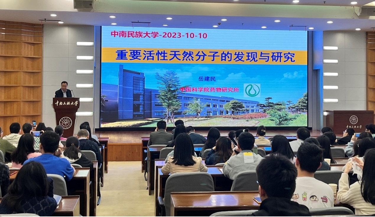 10月10日上午,中国科学院院士、中国化学会会士、中国医学科学院学部委员,上海药物研究所岳建民教授应药学院邀请来校讲学,在学术交流中心作了题为《重要活性天然分子的发现与研究》的学术报告,向师生们分享学科前沿动态,讲授治学修身理念。报告会由药学院刘吉开教授主持,全校近200名师生参加。