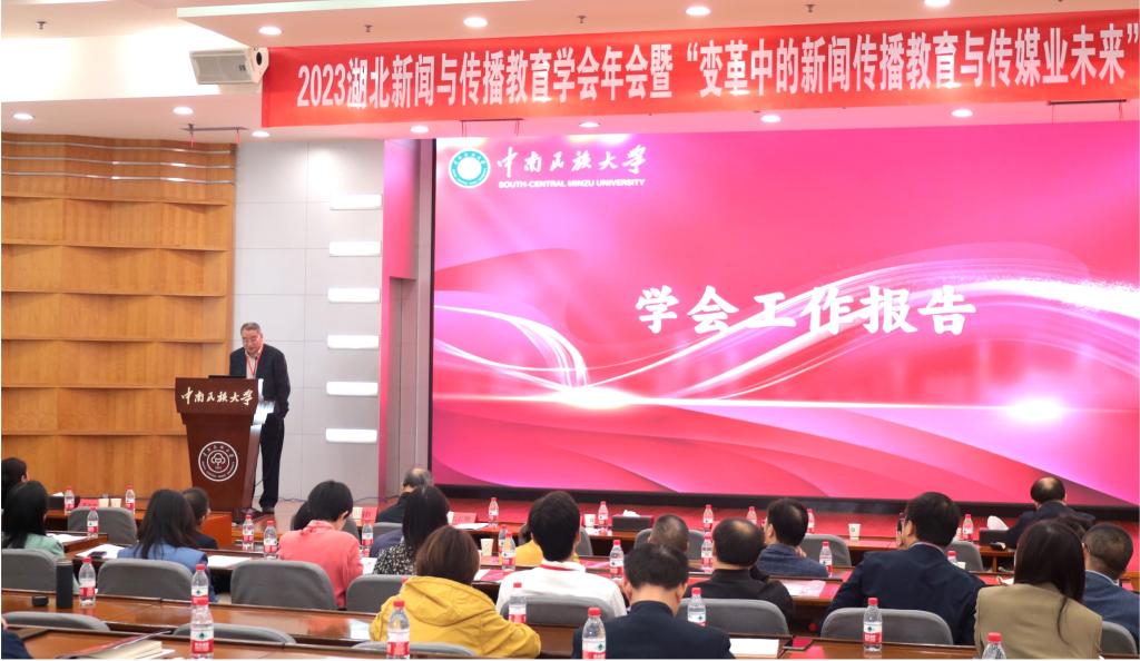 湖北新闻与传播教育学会副会长、湖北大学新闻传播学院廖声武教授主持了学会换届大会。强月新当选新一届湖北新闻与传播教育学会会长。
