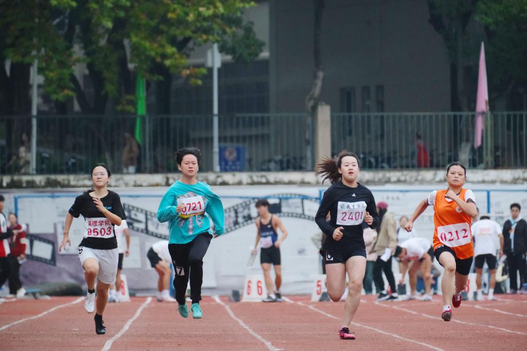 校运会赛事精彩纷呈,运动员们在田径赛场上你追我赶,在球场上勇猛拼搏,在沙地上奋力一跃……民族传统体育项目的比赛同样紧张激烈,毽球、武术、象棋、民族健身操、翻树叶、押加等项目,集观赏性与趣味性于一体,力图让更多的学生参与其中,身有所感,在运动中感受快乐,传承民族传统体育文化。教职工们也与同学们一起运动一同拼搏,1400余人次参加了飞镖、手球掷准、100m、400m、跳远、铅球、拔河、同心鼓颠球、毛毛虫竞速、50米迎面接力、双人网球、双人乒乓球等20项集体和个人项目。