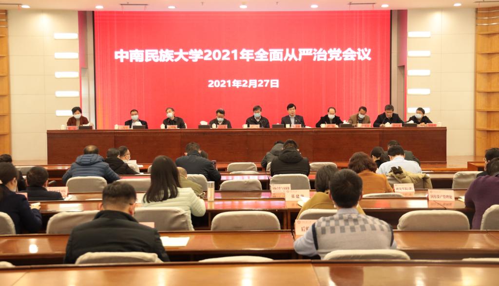 校党委书记边境对学校全面从严治党工作进行了部署,要求各基层党组织和全体党员干部坚持以习近平新时代中国特色社会主义思想为指导,深入学习贯彻落实党的十九届五中全会、十九届中央纪委五次全会、国家民委2021年全面从严治党工作会议和湖北省纪委十一届五次全会精神,增强“四个意识”、坚定“四个自信”、做到“两个维护”,坚定不移抓好全面从严治党;扎实开展好党史学习教育,加强组织领导,树立正确党史观,立足本职工作学以致用,注重方式方法创新,高标准高质量完成学习教育各项任务。他指出,要坚持从政治上看全面从严治党,不断提高政治判断力、政治领悟力、政治执行力,发挥全面从严治党引领保障作用,确保学校“十四五”开好局、起好步。他强调,要以强有力的政治监督,确保党中央重大决策部署贯彻落实到位;毫不松懈纠治“四风”,坚决整治形式主义、官僚主义;坚定不移正风肃纪,一体推进不敢腐、不能腐、不想腐;完善监督体系,加强对“一把手”监督和同级监督;肩负全面从严治党政治责任,切实提高管党治党效能。