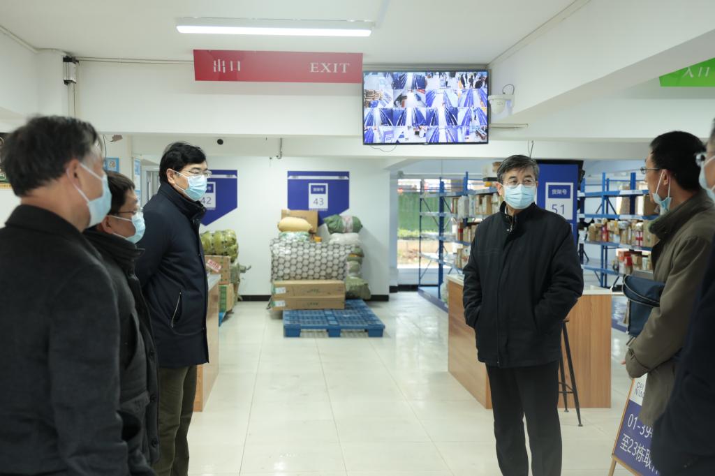 检查组一行在学生宿舍、快递点、防疫物资储备点了解情况。刘虹 摄