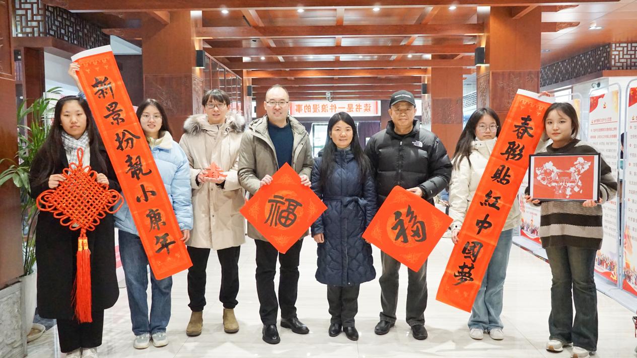 一副对联写喜庆,一纸窗花剪吉祥。12月29日上午,学校传统文化体验迎元旦活动在图书馆卓越走廊举行。活动由校团委、图书馆主办,由艺苑书画协会、剪纸协会、创意中国结协会、玫瑰园诗社、南湖诗社协办。现场写春联、剪纸、编织中国结等中国传统民俗文化吸引了不少师生前来感受和体验,校党委常委、副校长李红燕、相关职能部门负责人与同学们一起参加了活动。