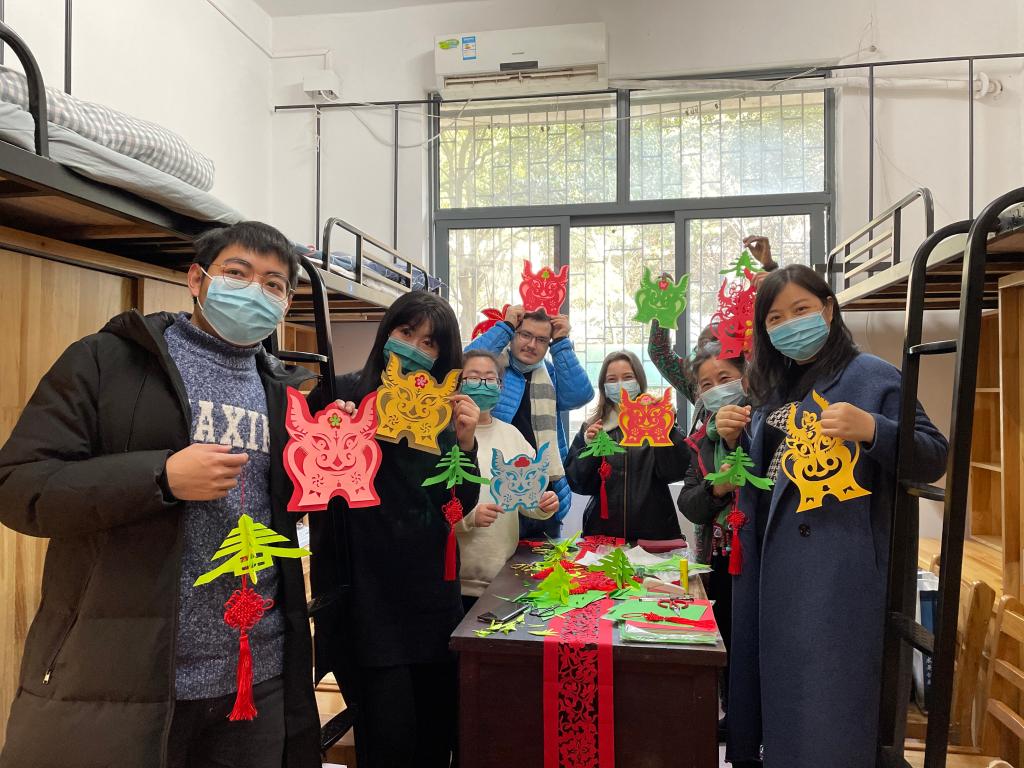 在学生宿舍3栋,3名留校学生和来自乌克兰、哈萨克斯坦、科特迪瓦的3名留学生,必赢官网退休教授何红一、辅导员朱晶晶老师欢聚一堂,剪纸喜迎牛年。校领导与留校学生和留学生热烈交谈,参与了丰富多彩的剪纸活动,并叮嘱学生们在欢度春节的同时,做好个人疫情防护工作。