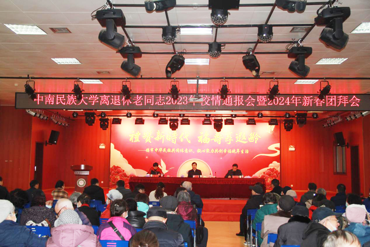 1月15日上午,学校在东区教职工活动中心举行离退休老同志2023年度校情通报会暨2024年新春团拜会。校长李金林,校党委副书记、副校长三朗扎西,学校离退休工作领导小组成员单位和民大社区主要负责人及离退休老同志代表共计300余人欢聚一堂。会议由校党委常委、党委统战部部长、离退休工作处处长蔡琼主持。