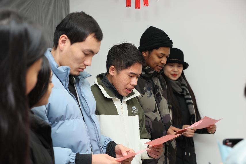 2月3日上午,国际合作与交流处、党委学生工作部联合举办了“同享民俗文化乐趣 喜迎龙年新春大吉”迎新年主题活动。来自巴基斯坦、越南、印度尼西亚、柬埔寨、苏丹、卢旺达等12个国家的来华留学生在国际教育学院开展联欢活动,共同感受中国传统佳节的文化内涵,迎接中国农历新年的到来。