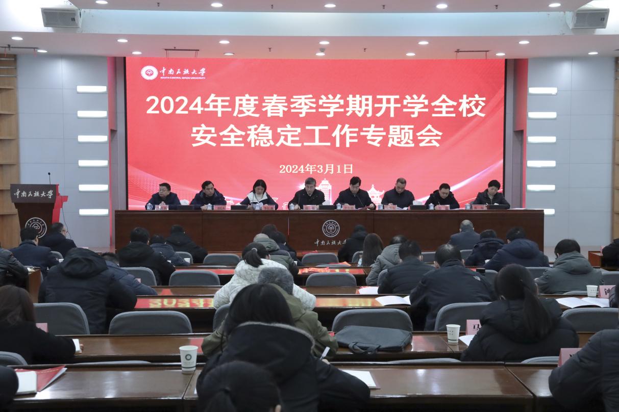 3月1日下午,学校在学术交流中心召开2024年春季学期开学安全稳定工作专题会。校党委常委,学校各单位主要负责人、部分单位全体班子成员参加,校长李金林主持会议。