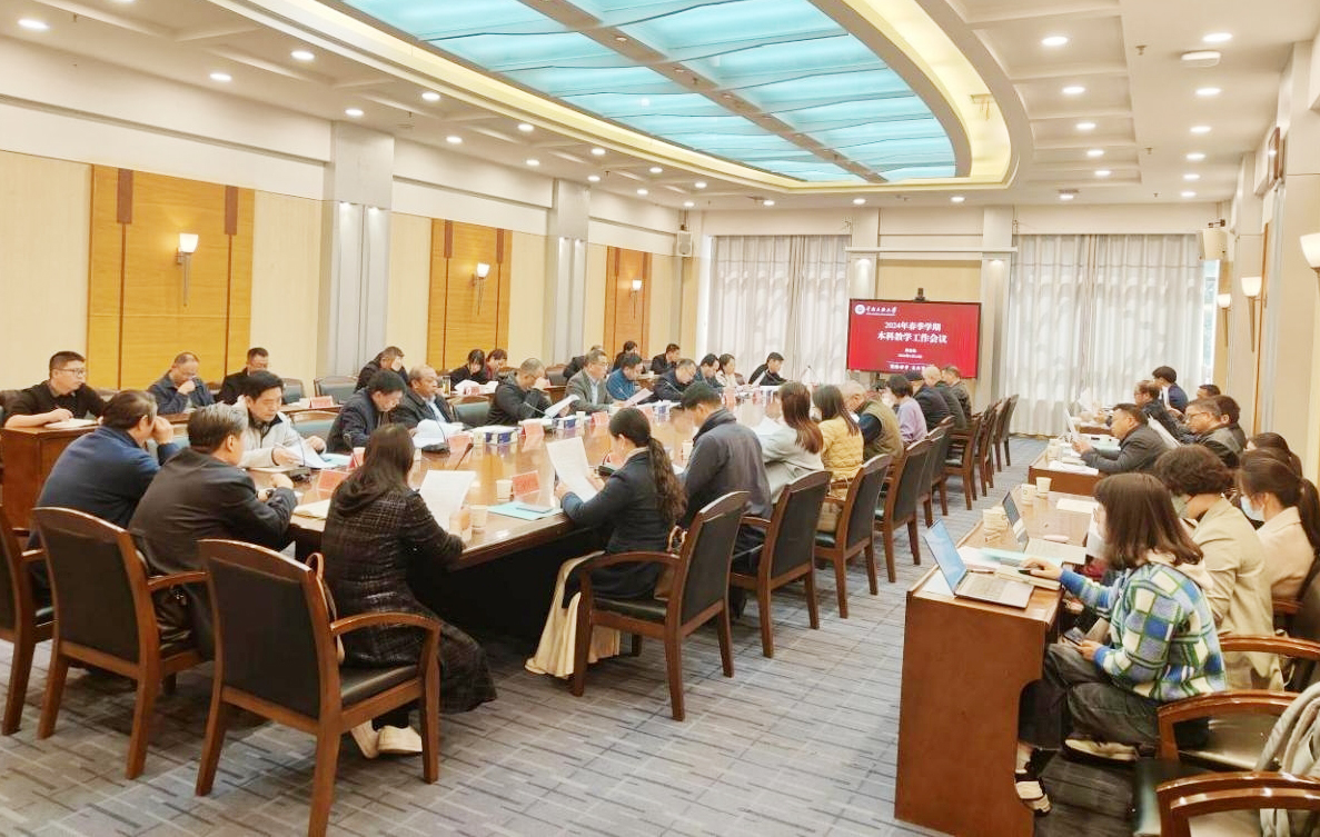 教务处处长胡军浩分享了教务处“服务师生、规范管理、提质增效、强化落实”的工作理念,全面总结了2023年本科教学工作取得的成绩和存在的不足,提出了改进举措,并从本科教学制度“废改立”、课堂教学质量提升、审核评估自评自建、中华民族共同体意识教育、专业调整优化和转型升级、课程教材建设、基层教学组织建设、实习实践提质增效、本科教学大讨论、国家语言文字推广基地建设等10个方面对2024年春季学校本科教学重点工作进行了部署。教务处副处长刘晶通报了2023年秋季学期本科教学质量监测情况,以及评教数据、督导领导同行听课情况、期中教学检查情况、听课巡课工作反馈等方面情况,并就本学期审核评估迎评促建工作作了安排。