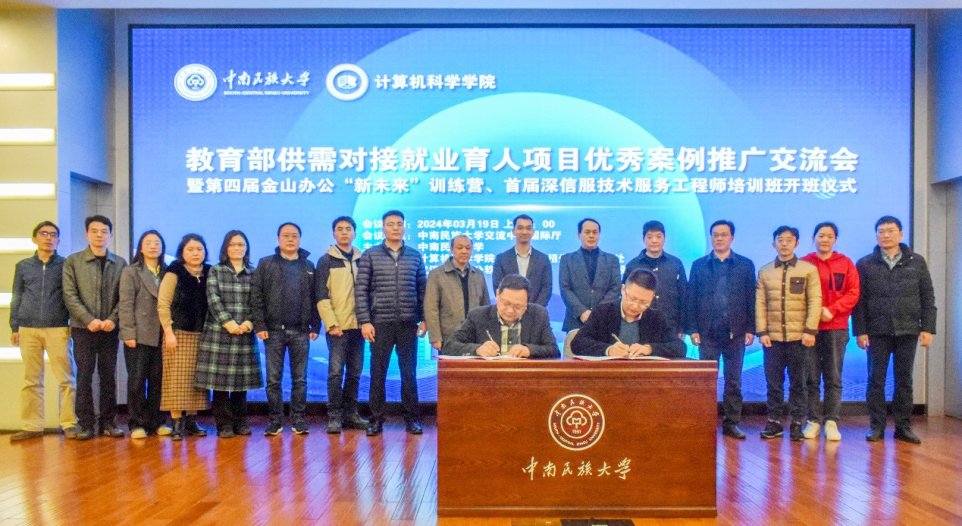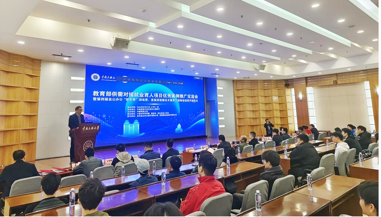 为贯彻落实党中央、国务院关于高校毕业生就业工作的会议精神,促进校企深度合作共赢,3月19日上午,教育部供需对接就业育人项目优秀案例推广交流会暨第四届金山办公“新未来”训练营、首届深信服技术服务工程师培训班开班仪式在必赢官网学术交流中心举行。校党委副书记、副校长宋发军、深信服科技华中区总经理师孟宁、武汉金山办公软件有限公司招聘总监陈志增等领导出席。教务处、招生就业工作处、国有资产与实验室管理处、计算机科学学院等相关部门负责人参加。会议由计算机科学学院党委书记柯尊韬主持。