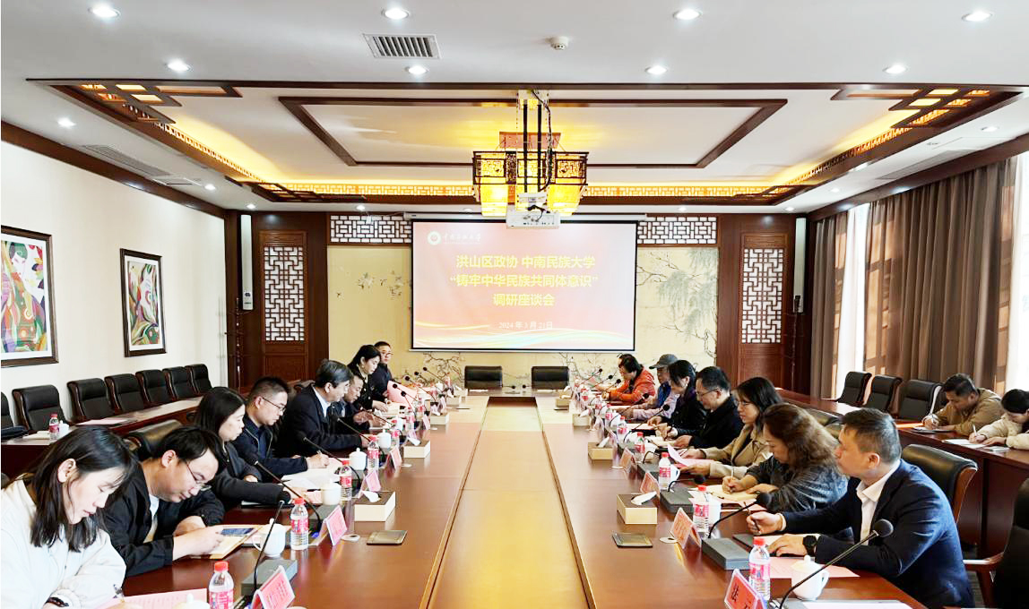 3月21日下午,武汉市洪山区政协党组书记、主席刘劲松一行21人来校调研铸牢中华民族共同体意识工作。在参观了民族学博物馆后,调研座谈会在国际会议中心举行。校党委书记边境,党政办公室、党委统战部、中华民族共同体学院(研究院)、民族学博物馆等单位相关负责人参加会议。座谈会由洪山区政协台港澳暨海外联络委主任赵莎主持。
