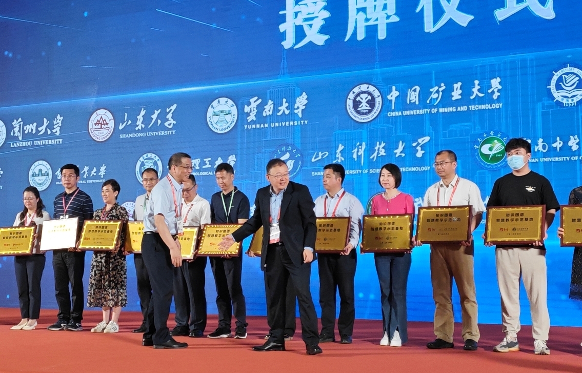 宋发军(前排左)为知识图谱智慧教学示范单位授牌。 曲夏瑾摄