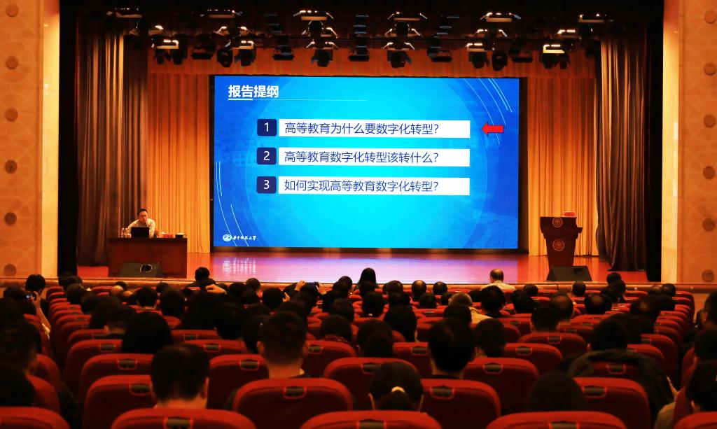 会议邀请了华中科技大学党委常委、副校长于俊清作专题辅导报告。他以《高等教育数字化转型战略思考》为题,立足习近平总书记关于教育的重要论述和关于数字中国建设的重要指示批示精神,从高等教育为什么要数字化转型、高等教育转型该转什么、如何实现高等教育数字化转型3个方面,深刻阐述了高等教育数字化转型面临的机遇与挑战,深刻剖析了转型过程中存在的问题,提出了高等教育数字化转型的“双减/简”之路。