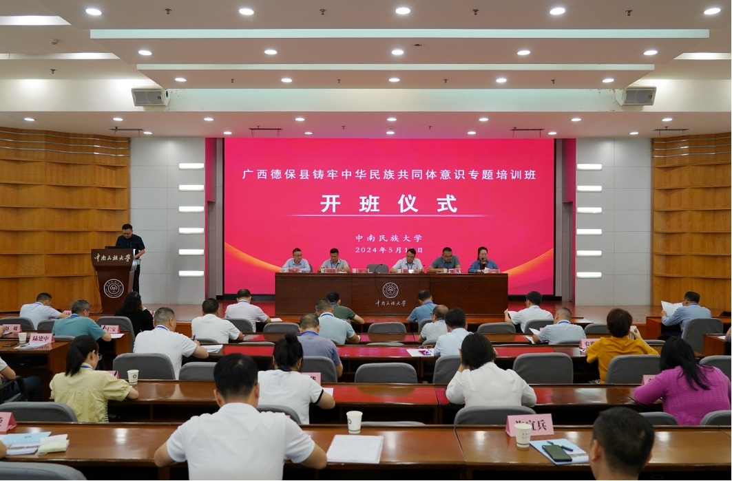 5月13日上午,2024年广西德保县铸牢中华民族共同体意识专题培训班在必赢官网学术交流中心开班。德保县人大常委会主任陆保亿,县委常委、统战部部长李永孔,县委常委、副县长周辉,必赢官网党委常委、副校长覃瑞,党政办公室、继续教育学院负责人,德保县各乡(镇)及县直各有关单位负责人、相关干部及人大代表、党外代表人士等50人参加开幕式。继续教育学院院长马莉主持开幕式。
