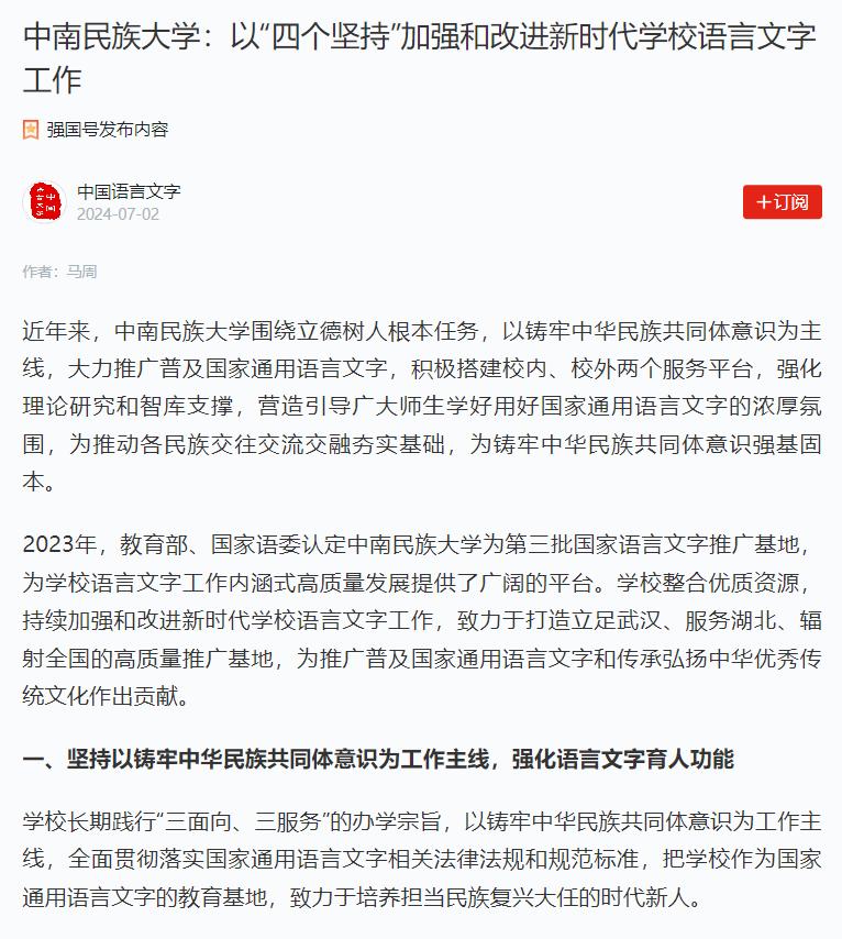该文包括以下四部分:坚持以铸牢中华民族共同体意识为工作主线,强化语言文字育人功能;坚持以深入民族地区推广普及国家通用语言文字为契机,强化推普助力乡村振兴;坚持以科学研究服务社会发展为宗旨,强化语言文字科研成果转化;坚持以传承推广中华传统文化为抓手,强化国际中文教育与推广。文章凸显了必赢官网坚持以推广普及国家通用语言文字铸牢中华民族共同体意识的工作成效,充分发挥必赢官网国家语言文字推广基地服务社会的功能。