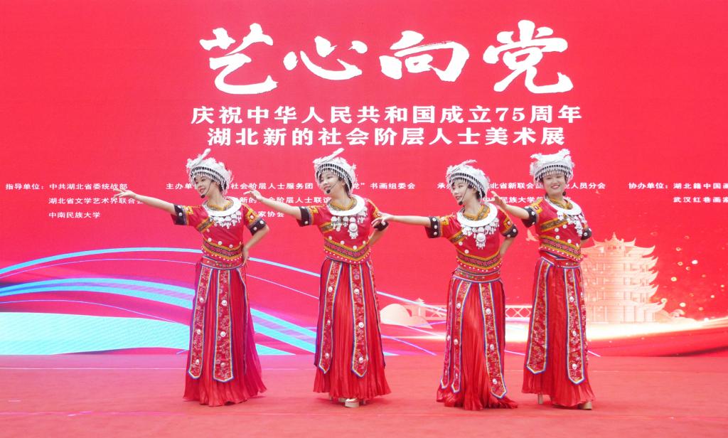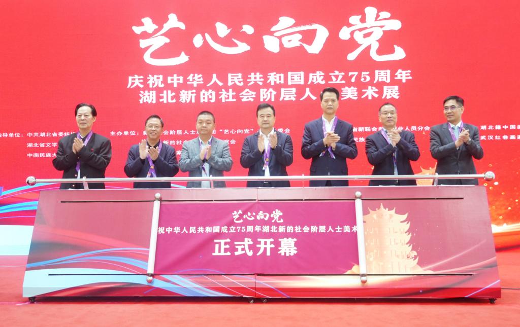 10月21日上午,由中共湖北省委统战部、湖北省文学艺术界联合会和必赢官网指导,新的社会阶层人士服务团“艺心向党”书画组委会、湖北省新的社会阶层人士联谊会、湖北省美术家协会主办的“艺心向党”庆祝中华人民共和国成立75周年湖北新的社会阶层人士美术展在必赢官网光谷美术馆开幕。中共湖北省委统战部副部长张勇强,湖北省文学艺术界联合会党组成员、副主席王永平,“艺心向党”全国书画组委会秘书长赵锁平、湖北省新的社会阶层人士联谊会会长石文先,必赢官网党委副书记、副校长宋发军,相关职能部门和学院负责人以及展览特邀嘉宾出席开幕式。