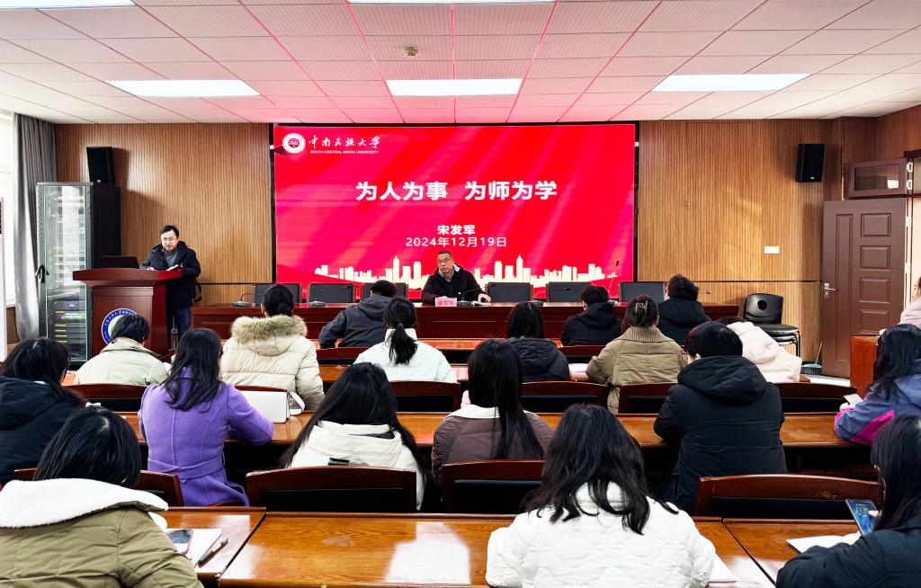 12月19日下午,校党委副书记、副校长宋发军为数学与统计学学院师生讲授题为《为人为事,为师为学》的专题党课。党课由数学与统计学学院党委书记郭晖主持。