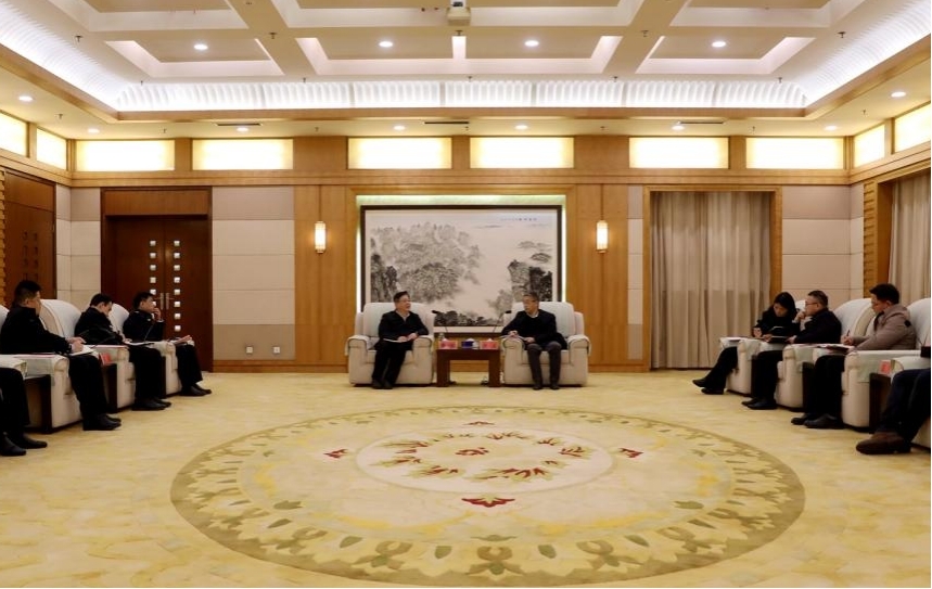 徐业勤与蒋学敏一行会谈。 党委保卫部 供图