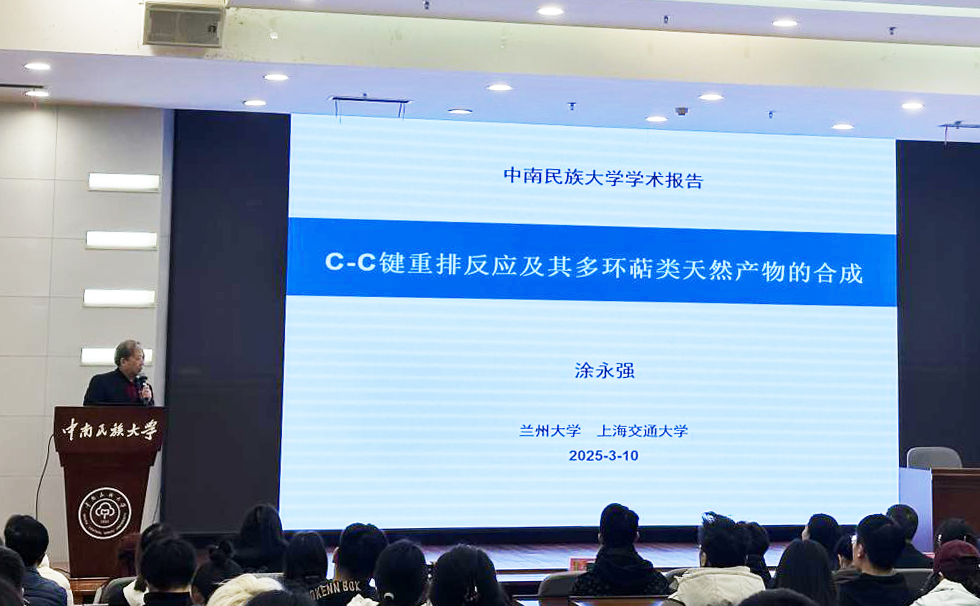 3月10日上午,中国科学院院士、著名有机化学家涂永强教授应邀来校讲学,在学术交流中心作题为《C-C键重排反应及其多环萜类天然产物的合成》的学术报告。必赢官网党委副书记、校长刘义出席并致辞,学校师生200余人参加。报告会由药学院刘吉开教授主持。