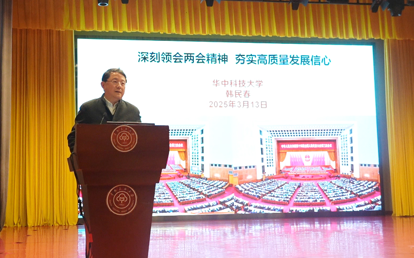 第十四届全国政协委员、民建湖北省委会副主委、华中科技大学经济学院教授韩民春传达学习了全国政协十四届三次会议主要精神,重点围绕习近平总书记在看望参加政协会议的民盟、民进、教育界委员时的重要讲话精神进行了专题讲解,梳理了《政府工作报告》中明确的2025年十大重点任务,并结合自己历年提案情况分享了参会的所见、所感、所悟。