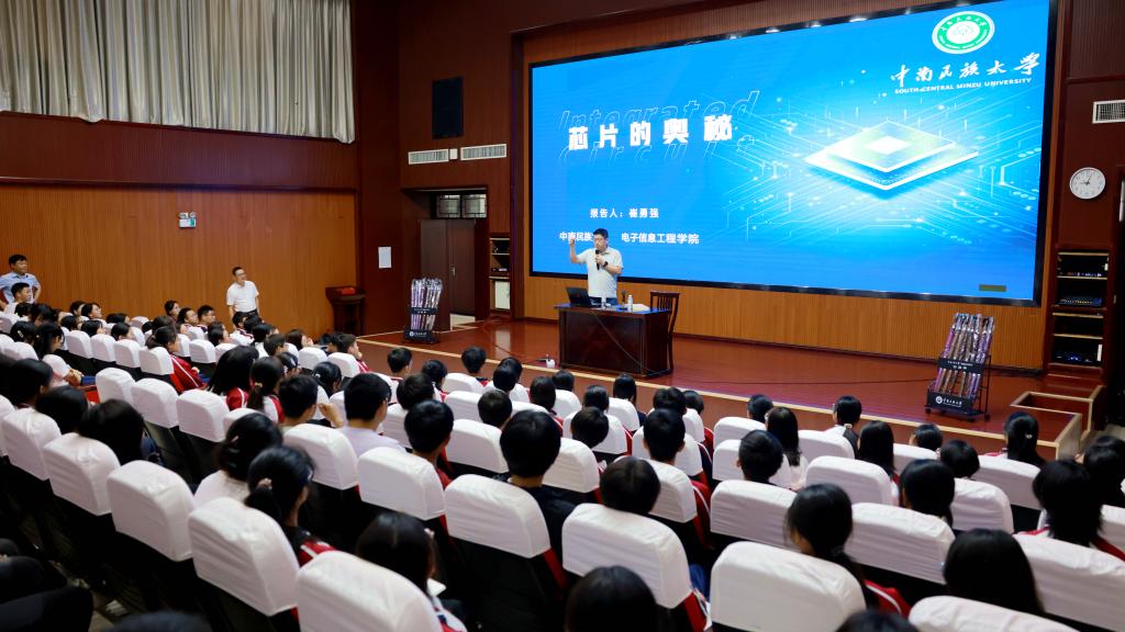 现场两百余名巴东一中师生专注聆听,兴致盎然。互动环节踊跃抢答,多名学子凭借优异表现获赠了象征科技力量的芯片纪念品。