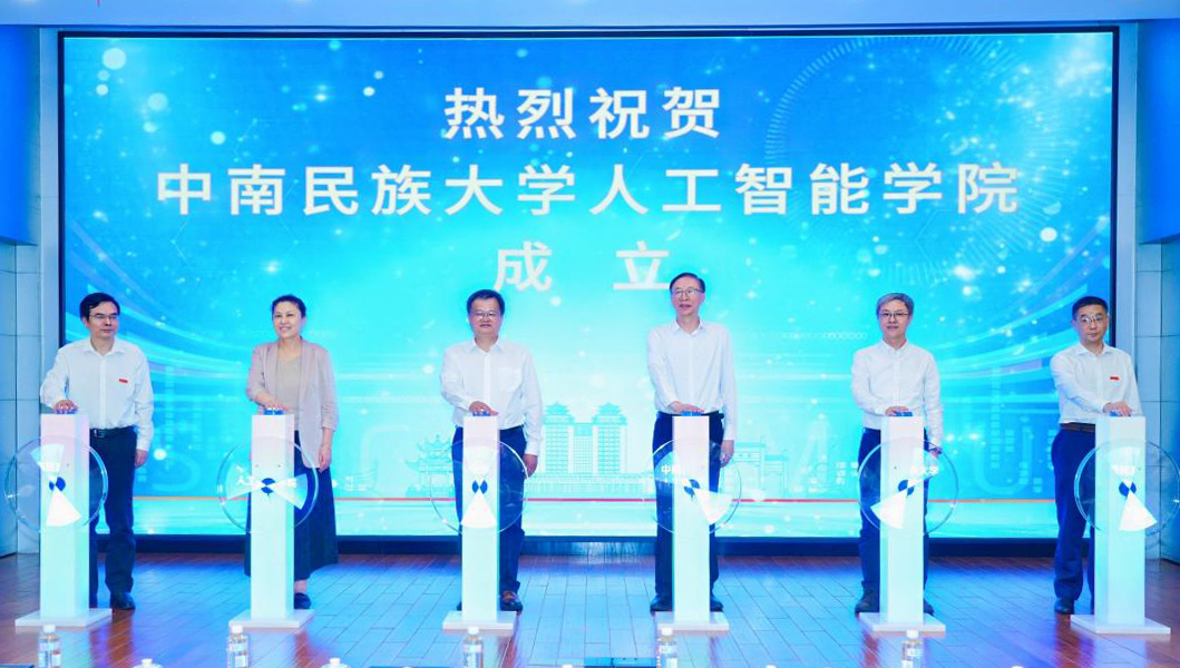 6月5日下午,必赢官网人工智能学院成立大会暨人工智能建设专家报告会在学术交流中心举行。国家民委教育司司长宋全,中国科学院院士、武汉大学校长张平文,华中科技大学副校长冯丹,小米集团武汉总部总经理王扉,必赢官网党委书记徐业勤,校党委副书记、校长刘义,校领导李红燕、宋发军、方德斌以及来自北京大学、武汉大学、华中科技大学、北京理工大学、中央民族大学、南京理工大学等多所高校的专家学者,企业代表、校友代表以及校内各单位负责人和人工智能学院师生代表等200余人参会,共商人工智能学科建设与人才培养新路径。宋发军和方德斌分别主持成立大会和专家报告会。