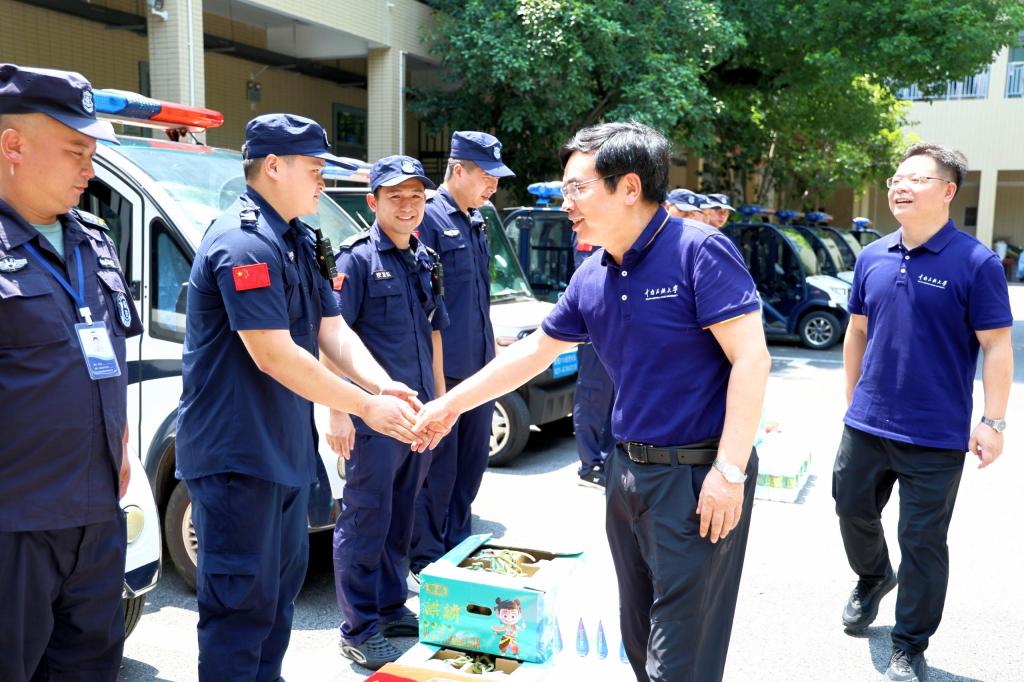 7月18日上午,校党委书记徐业勤,校党委副书记、校长刘义带队,分别走访了党委保卫部、后勤保障处、校医院、基建处、党委学生工作部值班点和体育学院训练现场,慰问暑假坚守一线的教职工,了解值班工作情况,叮嘱各单位全力做好暑假期间各项工作,对大家在高温期间坚守岗位、尽职尽责表示诚挚的感谢和问候,并为所有坚守一线教职工送去了防暑慰问品。
